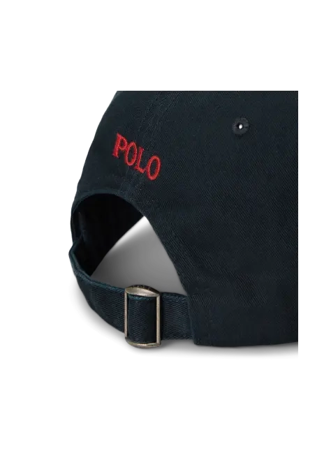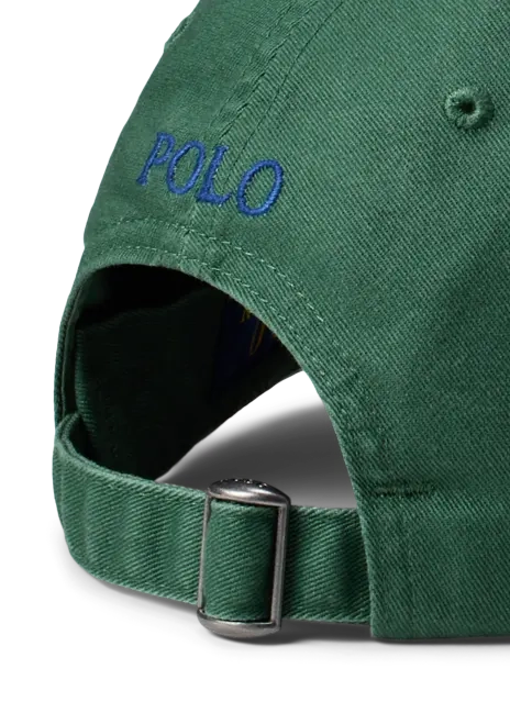 - Signature embroidered Pony at the front. “Polo” embroidery and a buckled strap at the back.