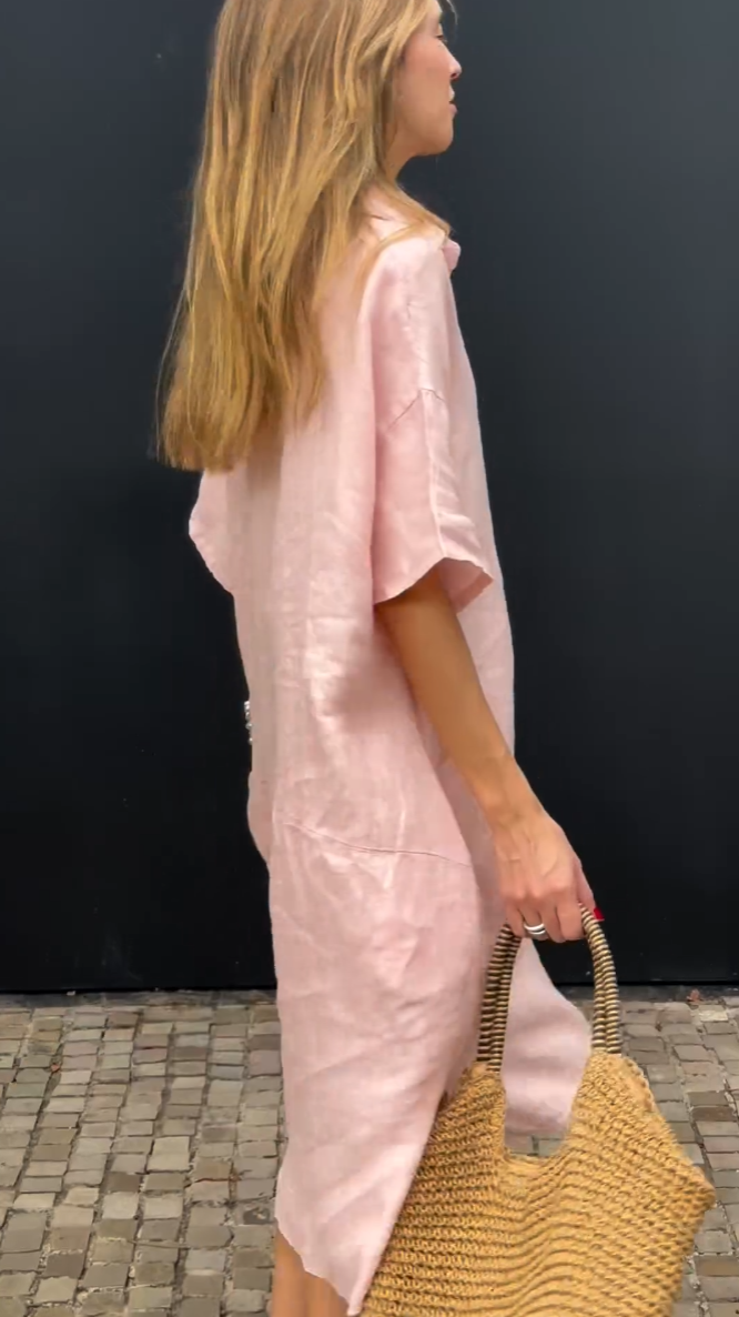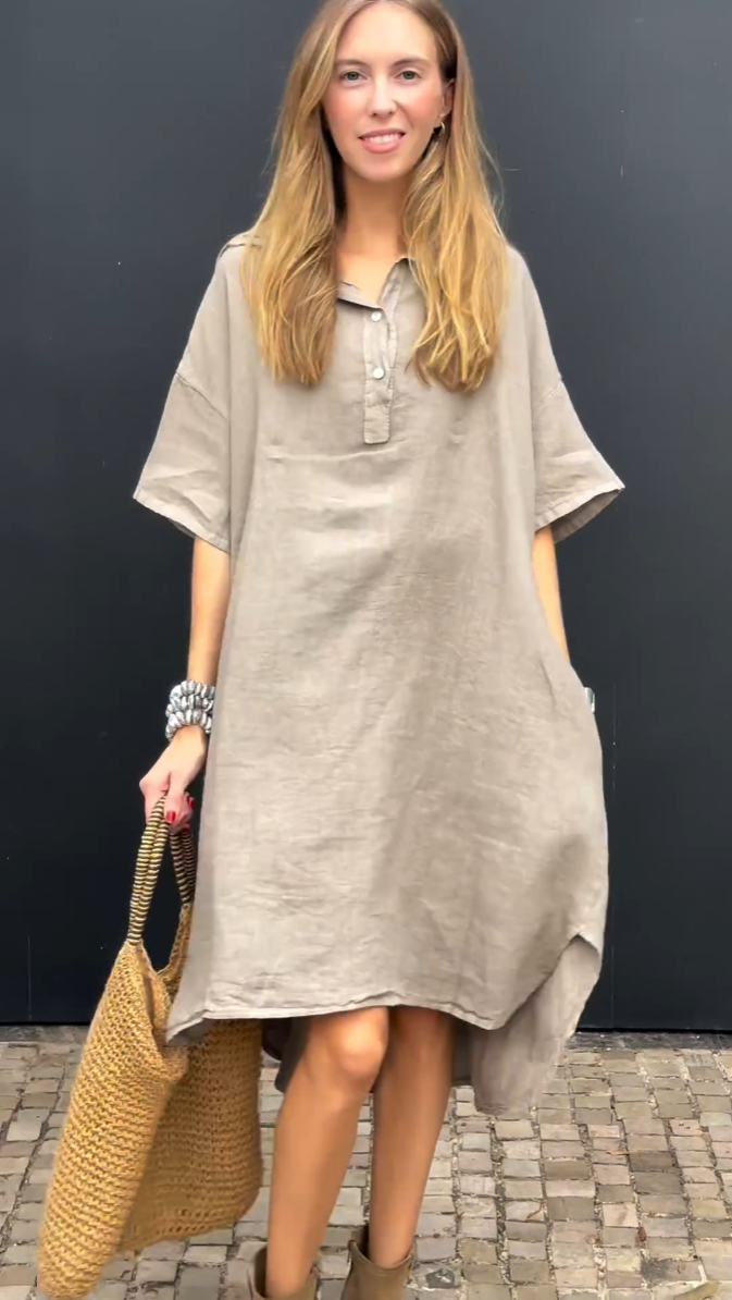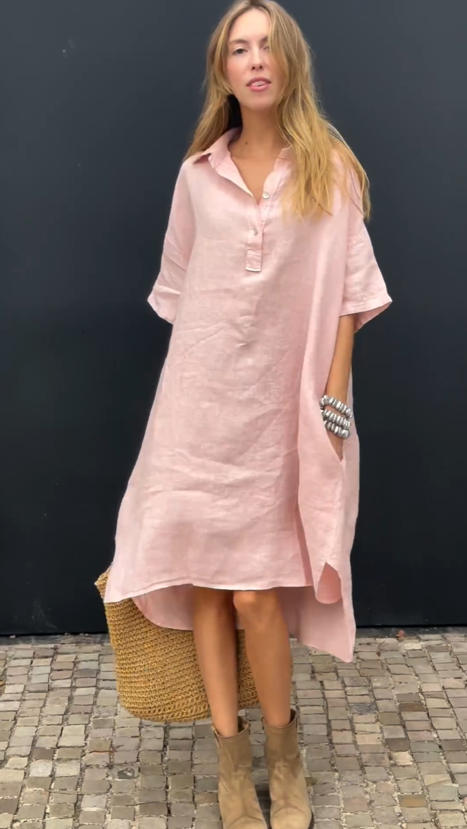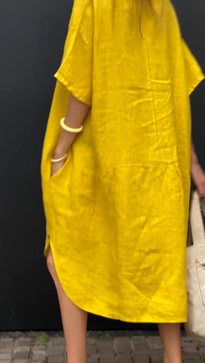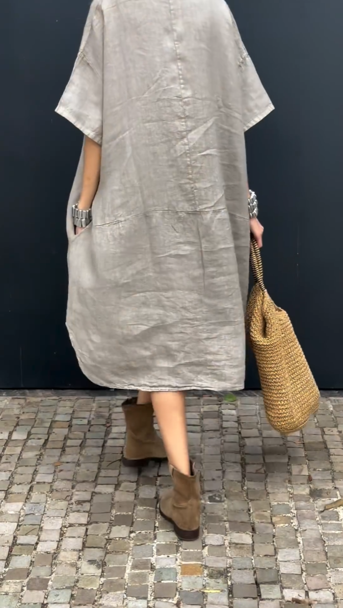 Perfect for spring and summer, this dress offers a cool and comfortable option for warm days. The linen fabric ensures you stay fresh and stylish, even in the heat.