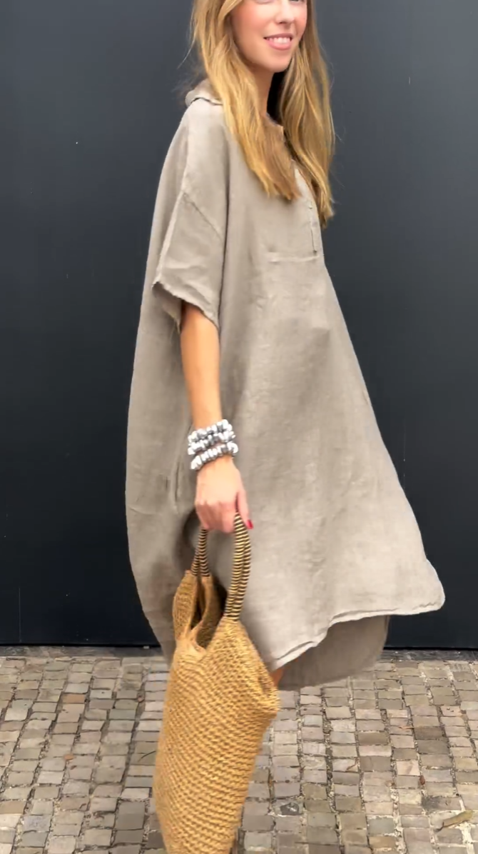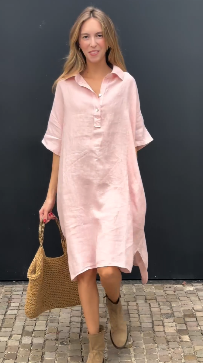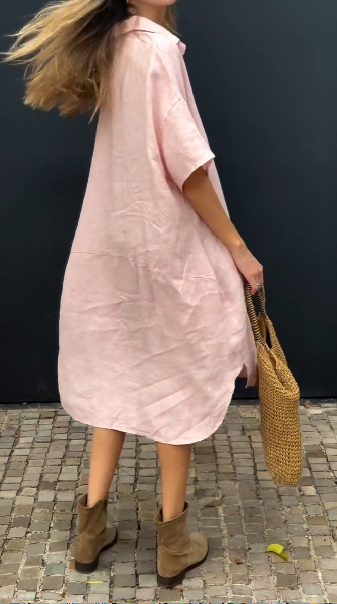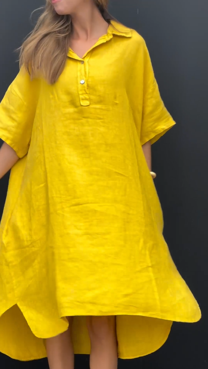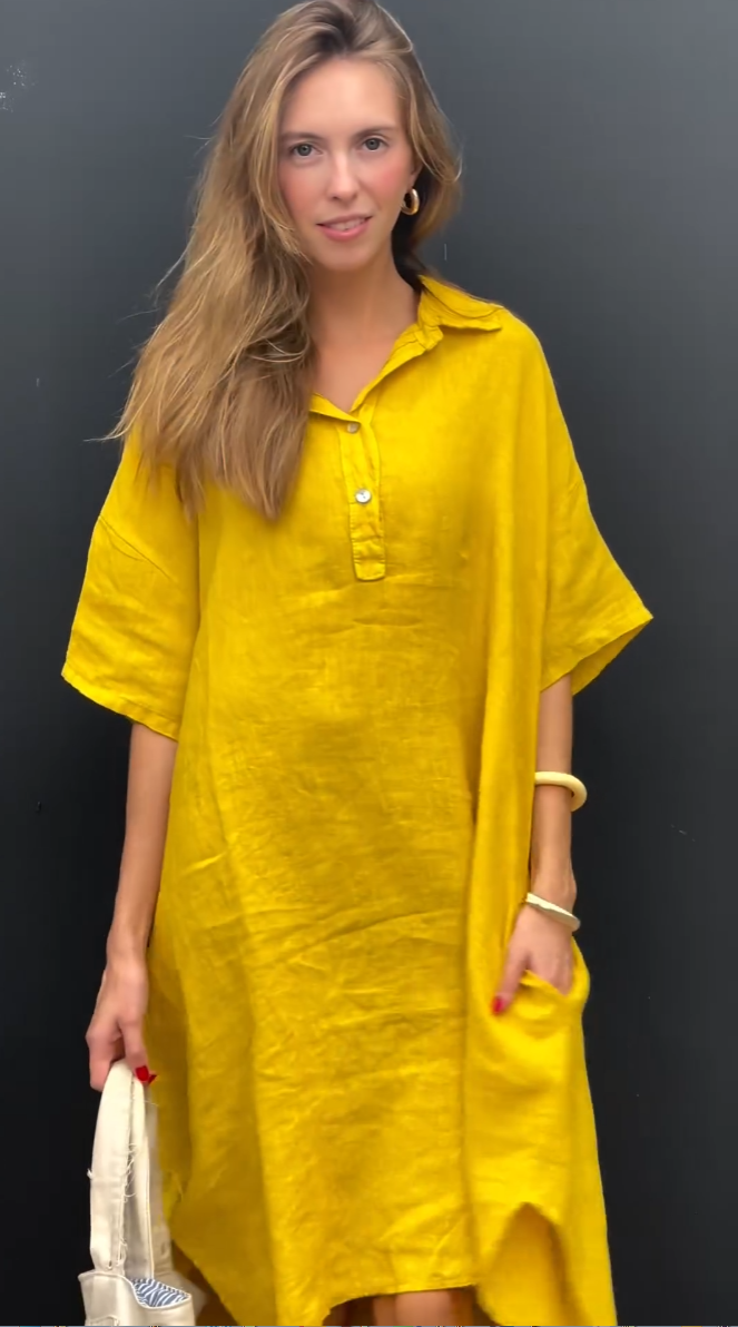 Perfect for spring and summer, this dress offers a cool and comfortable option for warm days. The linen fabric ensures you stay fresh and stylish, even in the heat.