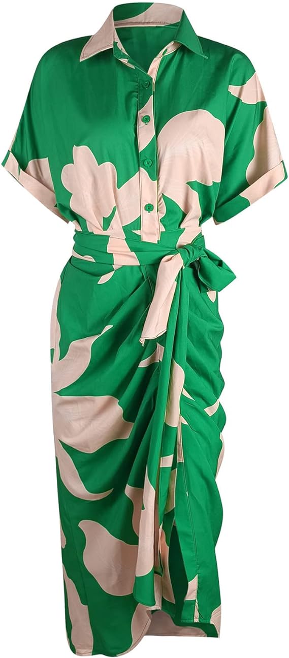 These Casual Lapel Neck Waist Print Shirt Dress are 2024 new style you have never seen before!