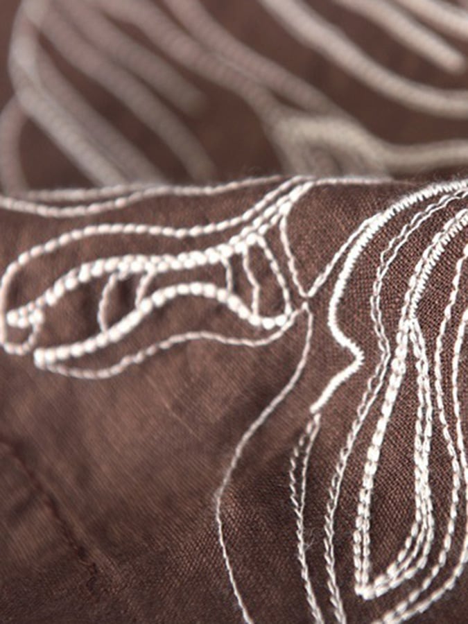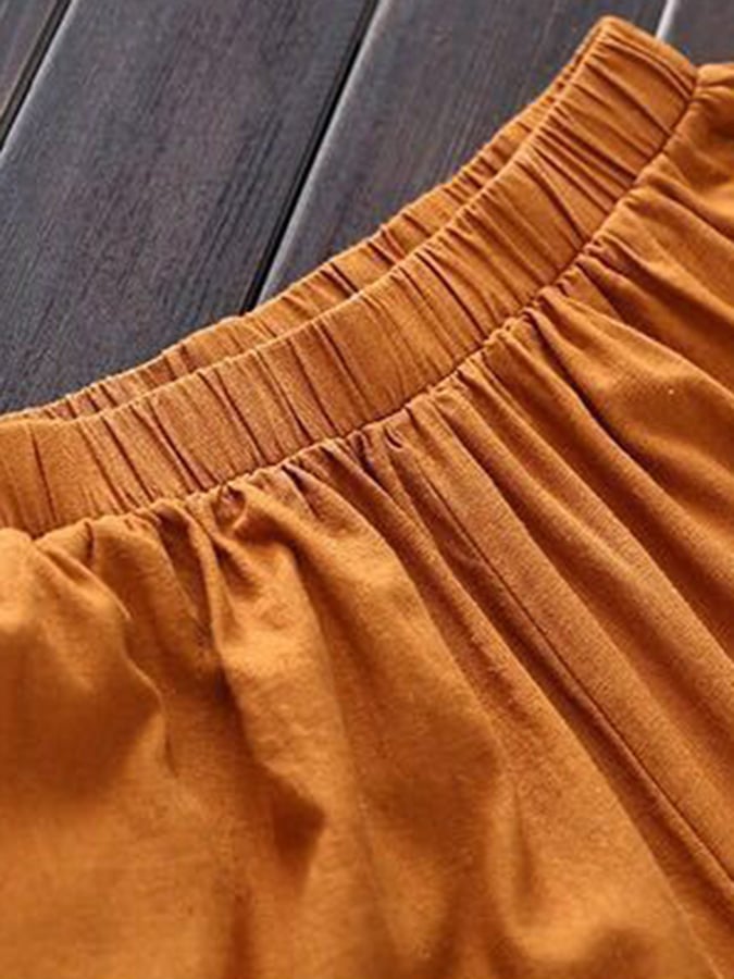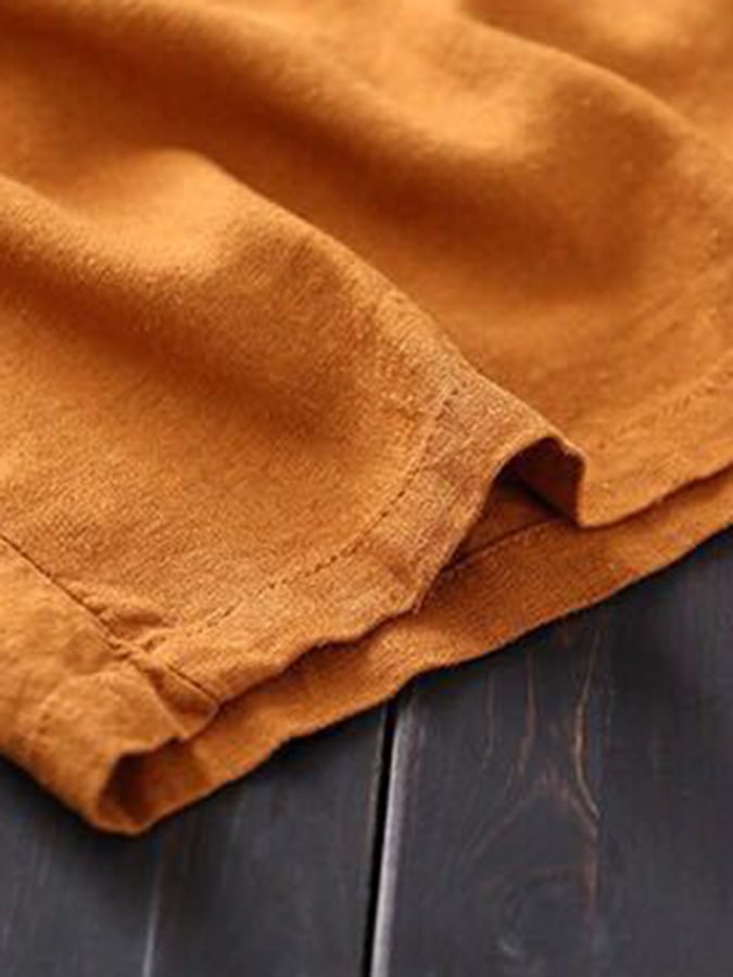 Cotton And Linen Floral Embroidered Casual Cropped Pants