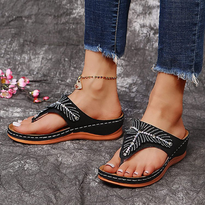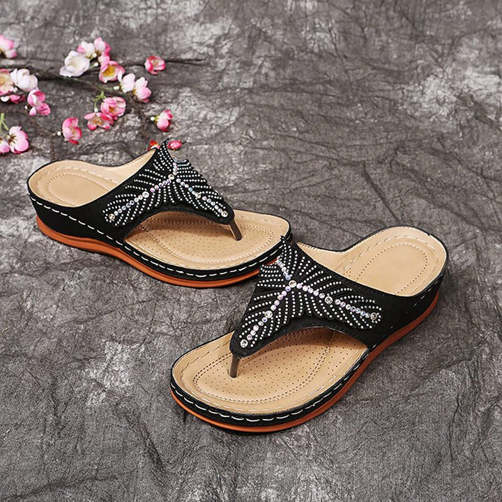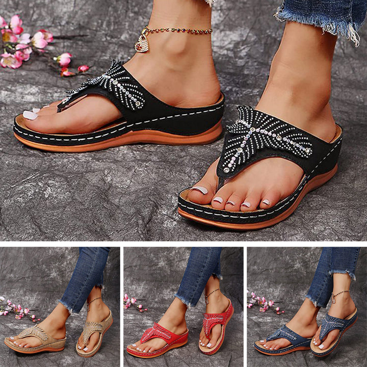"The Show" Wedge Orthopedic Sandals support your feet using 3 Arch Advantage Design, soft and smooth sole, memory foam, durable uppers so you could wear them out for a night on the town.